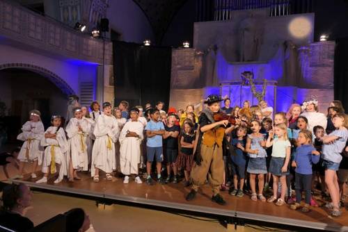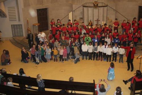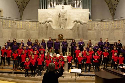 Kinder ab dem Schulalter singen im Kinderchor, je nach Alter und Eignung im Vor- oder im Hauptchor. Das Programm wird durch das Chorjahr gegliedert in eine Startphase im Herbst, ein Advents- und Weihnachtsprogramm, das Kindermitsingkonzert Anfang Februar, die Gestaltung eines Familiengottesdienstes in der Osterzeit und – zum Chorabschluss im Juli – eine szenisch gestaltete Kinderoper oder ein Kindermusical.