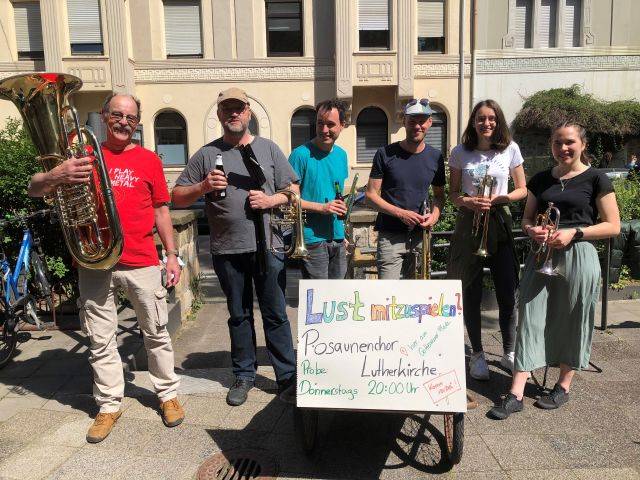 Der Posaunenchor probt im Gemeindehaus der Lutherkirche. Die aktive Zusammenarbeit mit dem Posaunenchor der Laurentiusgemeinde führt dazu, dass wir auch ab und zu in Hagsfeld miteinander proben.